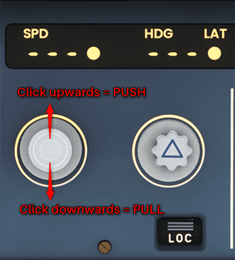 Using the legacy Cockpit Interaction System, you can push and pull knobs on the FCU like this: