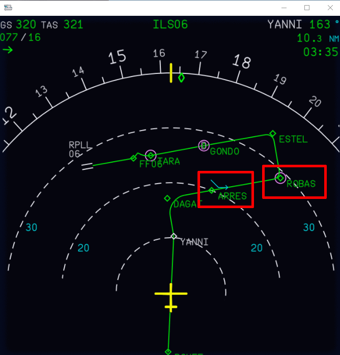 There are also a few pseudo waypoints indicated on the ND indicating different changes to the flight profile as the aircraft continues along the flight plan.