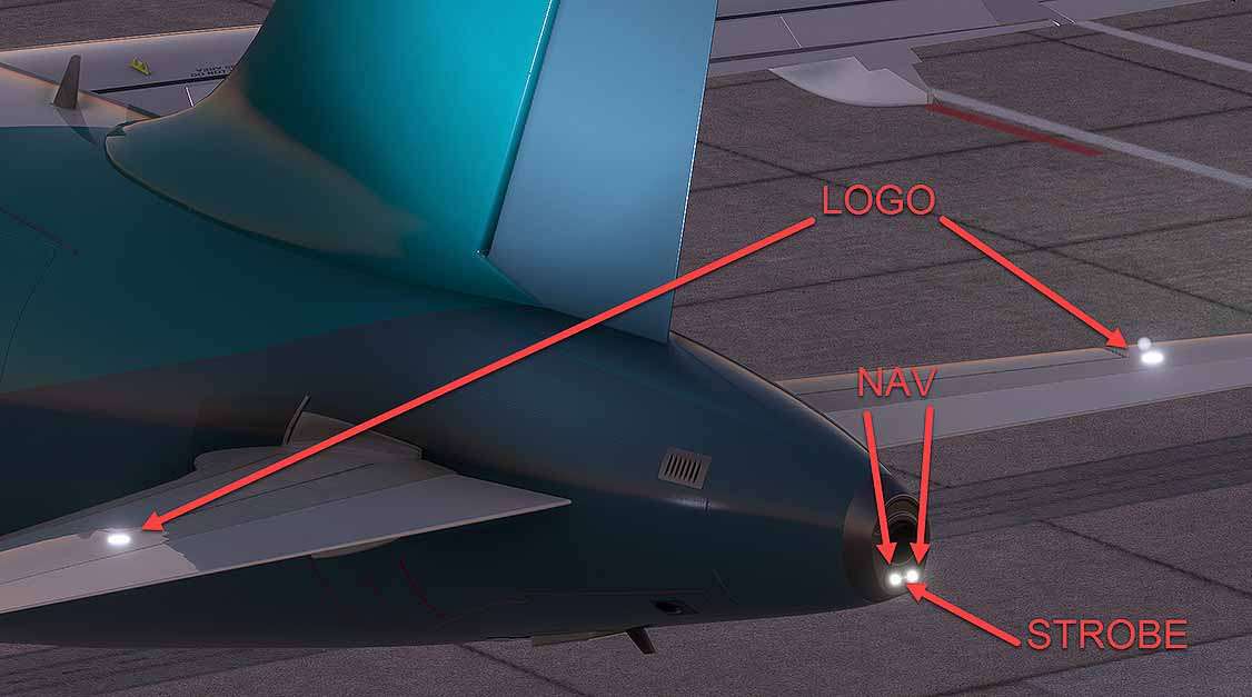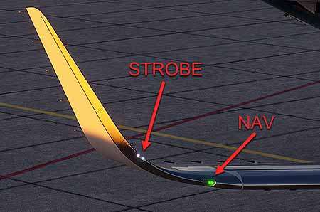 There are dual navigation lights on each wing tip and in the APU tail cone.