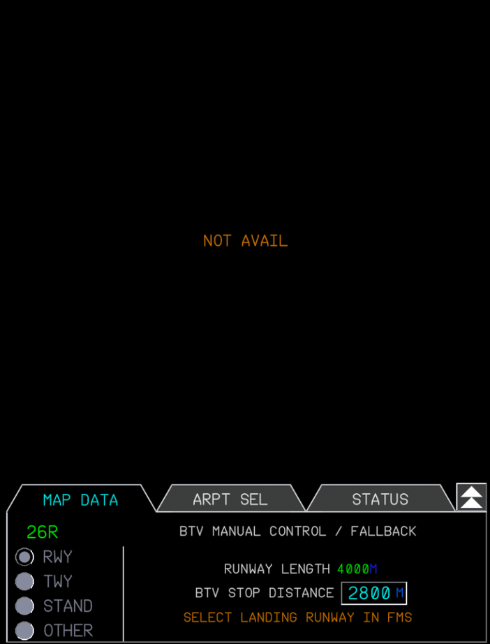 BTV can be set up manually without the OANS airport map through the OANS control panel, for details see Without Navigraph Unlimited
